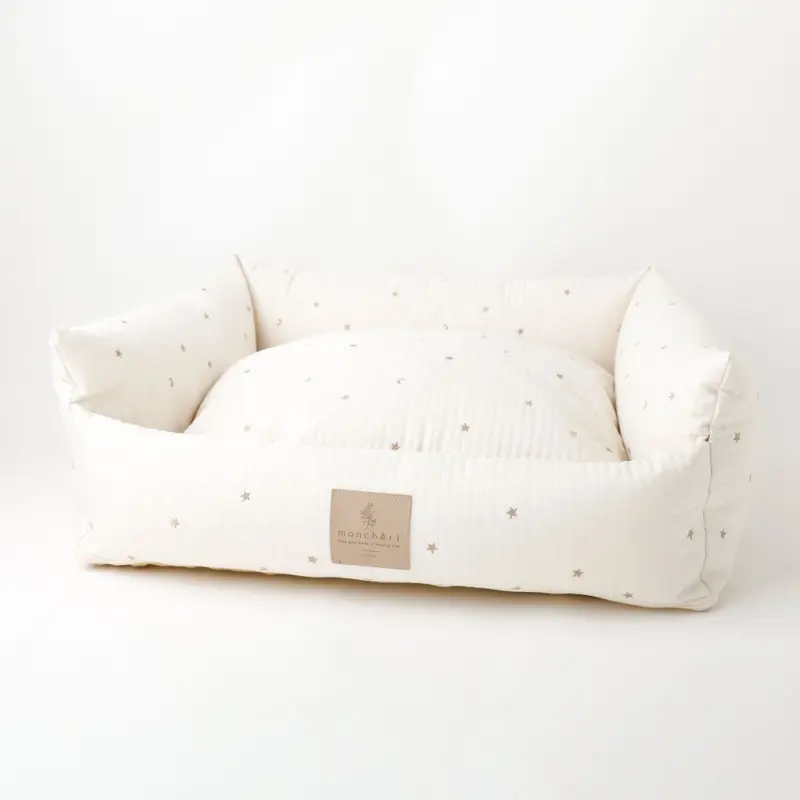 撥水お星さまとお月さま柄刺繍キルティングクッションベッド