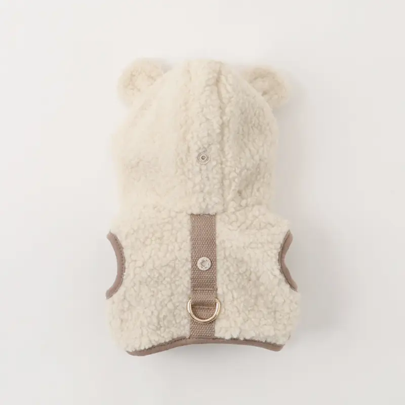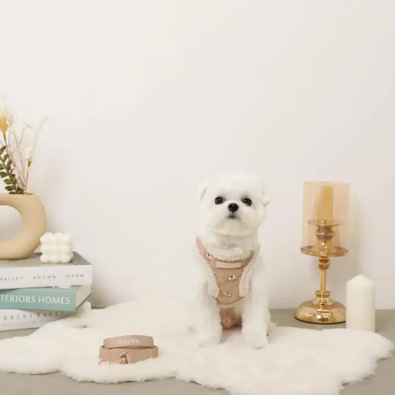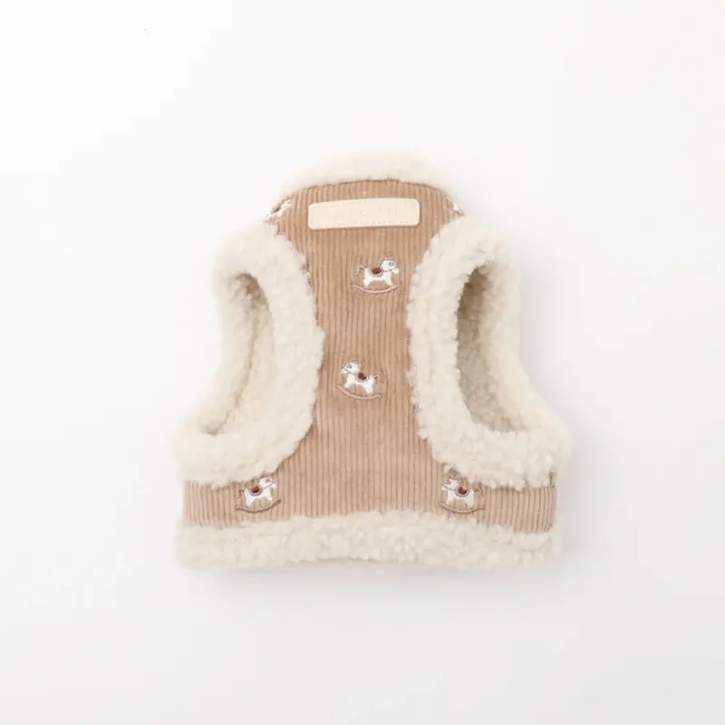 木馬刺繍入りコーデュロイボアハーネス+リードSET【名入れ刺繍対応】