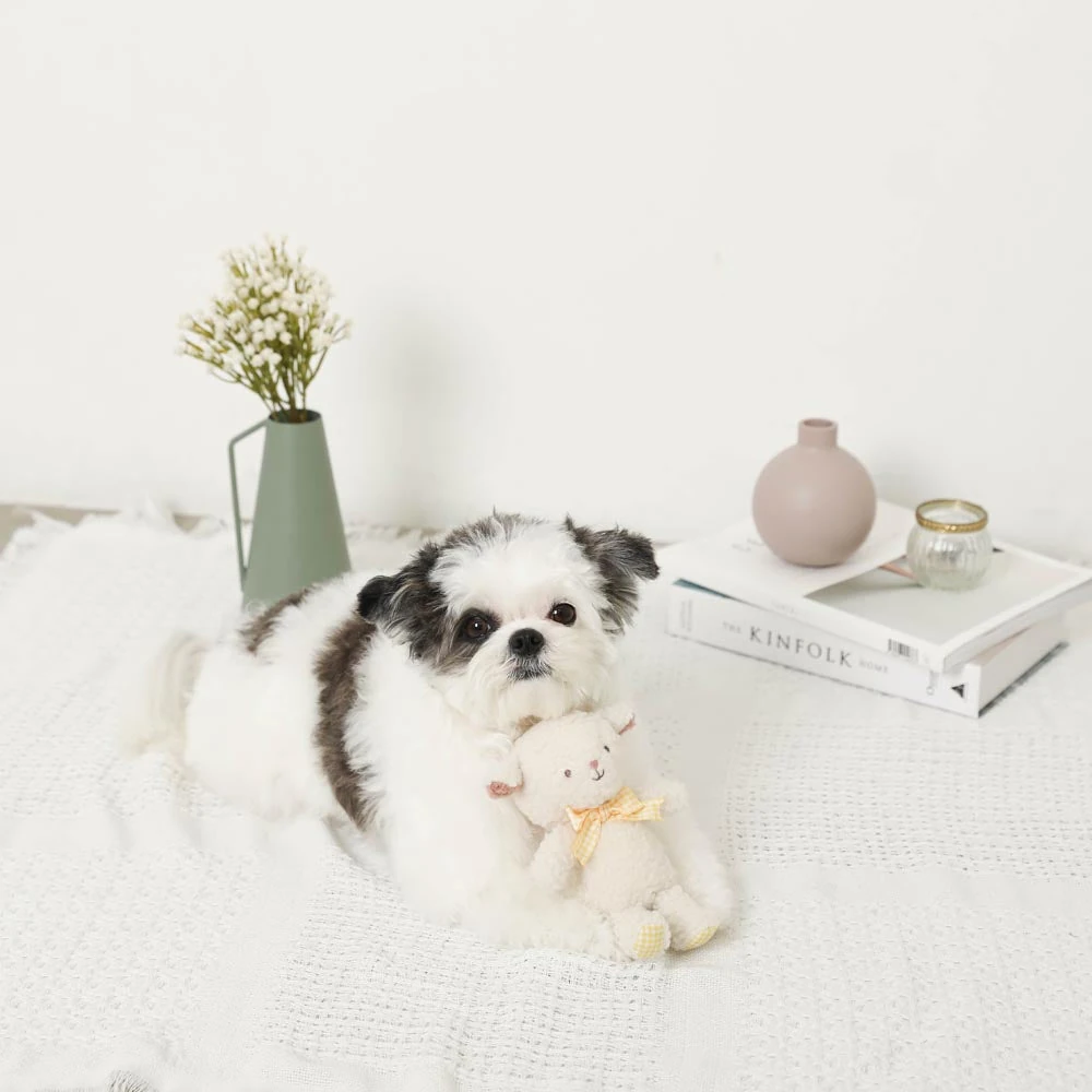 伝統的なギンガムチェックのリボンがアクセントとなったクラシカルで可愛らしいデザイン。色合いや素材のバランスにこだわり、どのようなお部屋のインテリアにもマッチするよう設計されています。ふんわりとした質感は抱き心地も抜群で、ストレス軽減効果も期待できます。