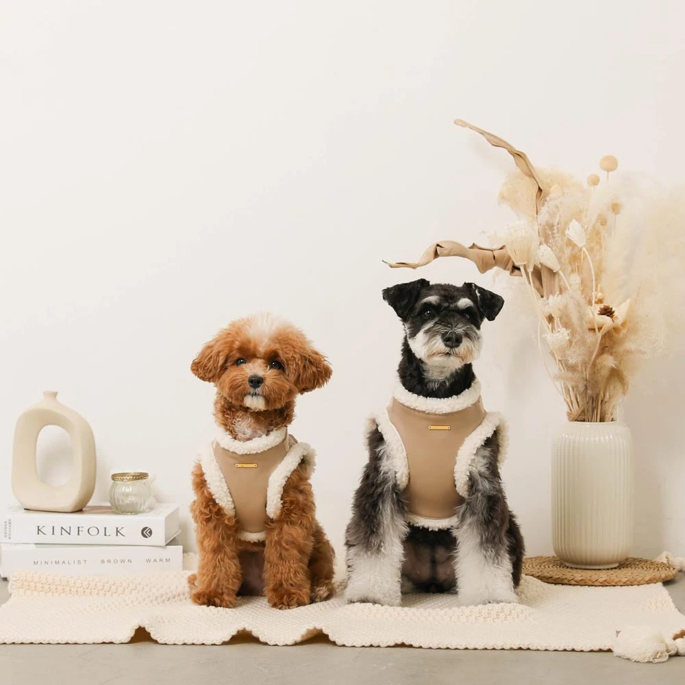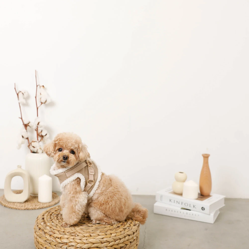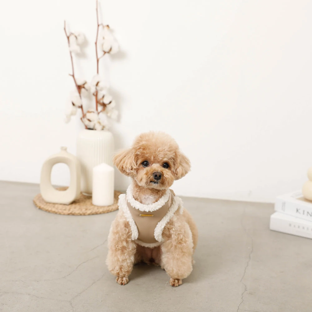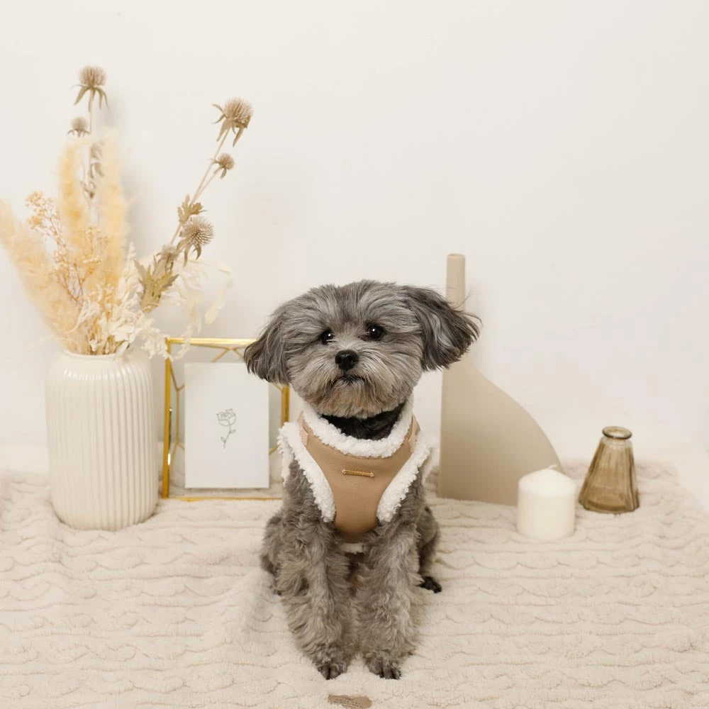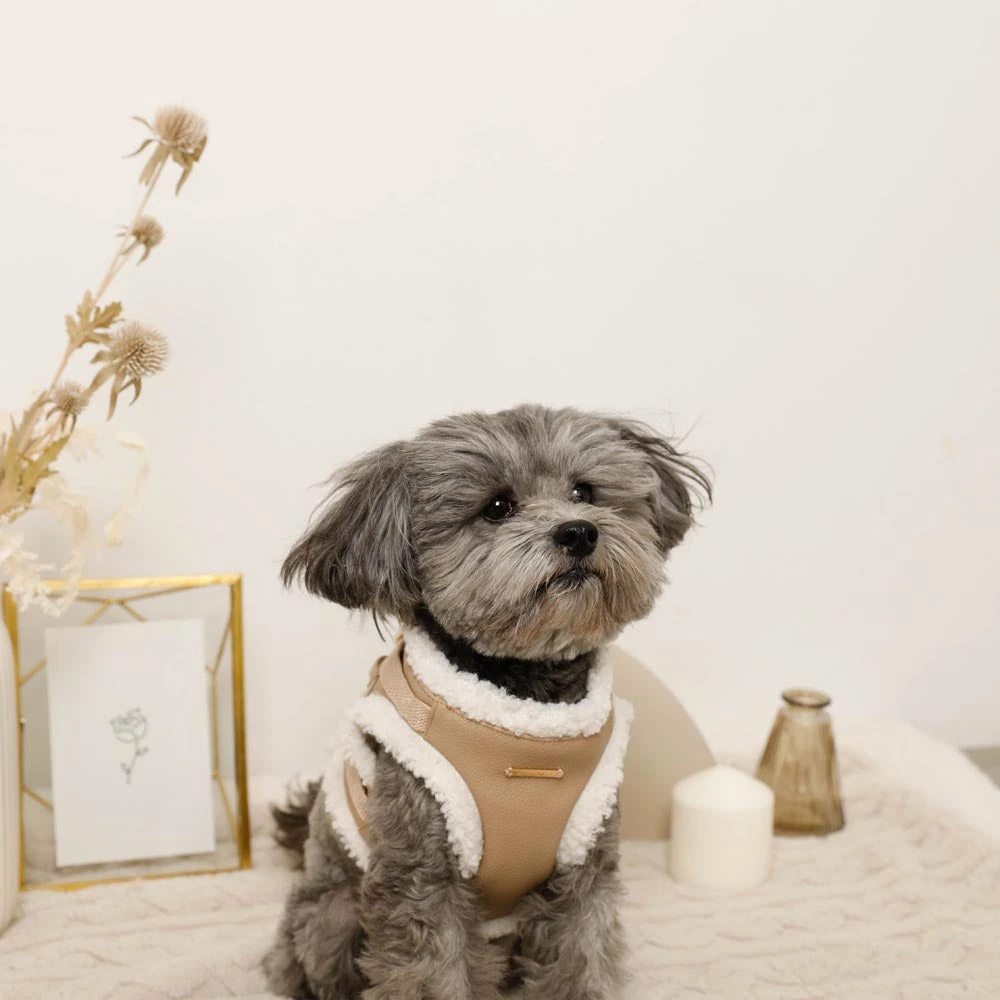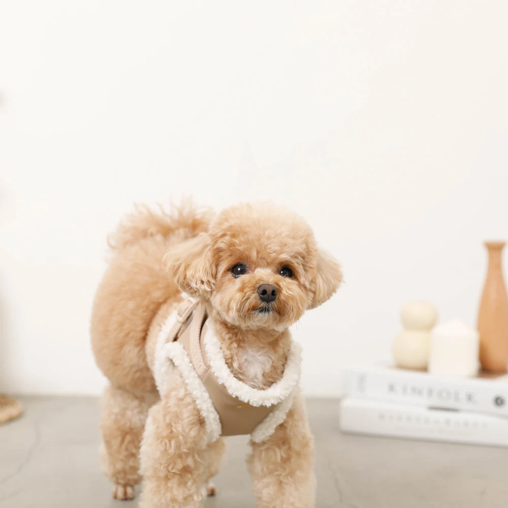 愛犬の肌に直接触れる部分には、極細繊維を使用した柔らかなボア素材を採用。摩擦による皮膚トラブルを防ぎ、快適な装着感を提供します。