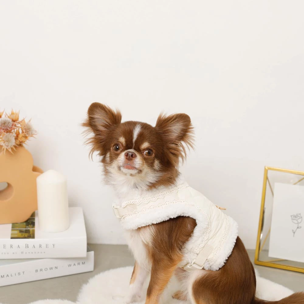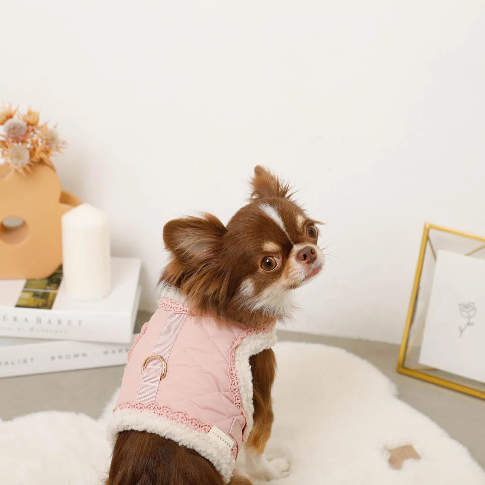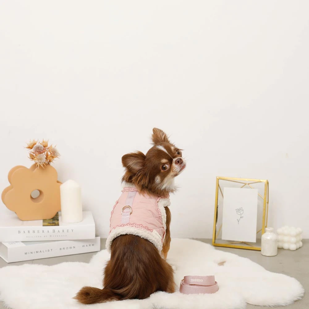 愛犬との毎日をより特別なものにしたいとお考えの飼い主様へ。キルティングボアレースハーネス+リードSETは、機能性とスタイリッシュなデザインを完璧に融合したプレミアムペット用品です。高級感あふれるキルティング生地と、ふんわり柔らかなボア素材の組み合わせが、愛犬に最高の装着感と保温性を提供します。名入れ刺繍に対応しているため、世界にたった一つのオリジナルアイテムとして、愛犬の個性を際立たせることができます。
