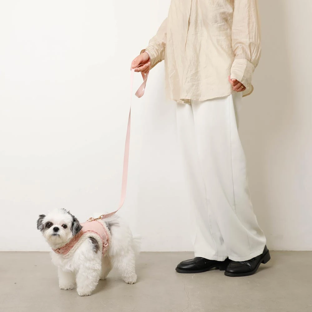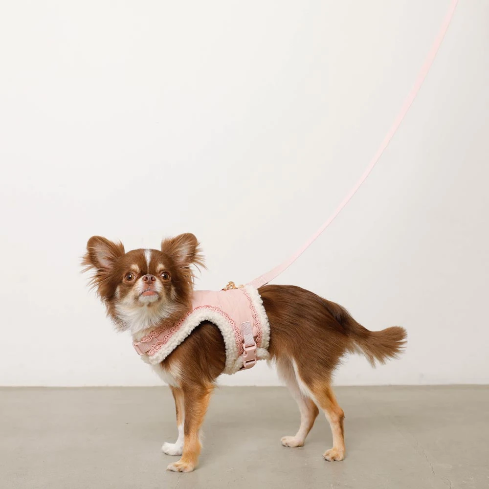 このハーネスセットは、単なるファッションアイテムではなく、愛犬の健康と快適さを真剣に考慮した設計が特徴です。キルティング構造による衝撃吸収性は、首や胸への負担を軽減し、長時間の散歩でも愛犬にストレスを与えません。ボア素材の保温効果は、寒い季節の散歩における体温維持に貢献します。また、適切なフィット感は愛犬の動きを制限せず、自然な歩行をサポートします。