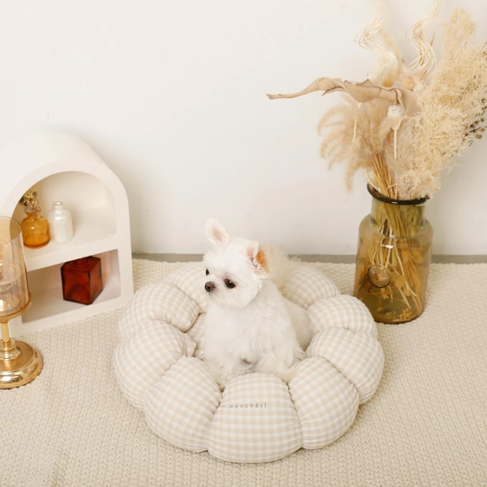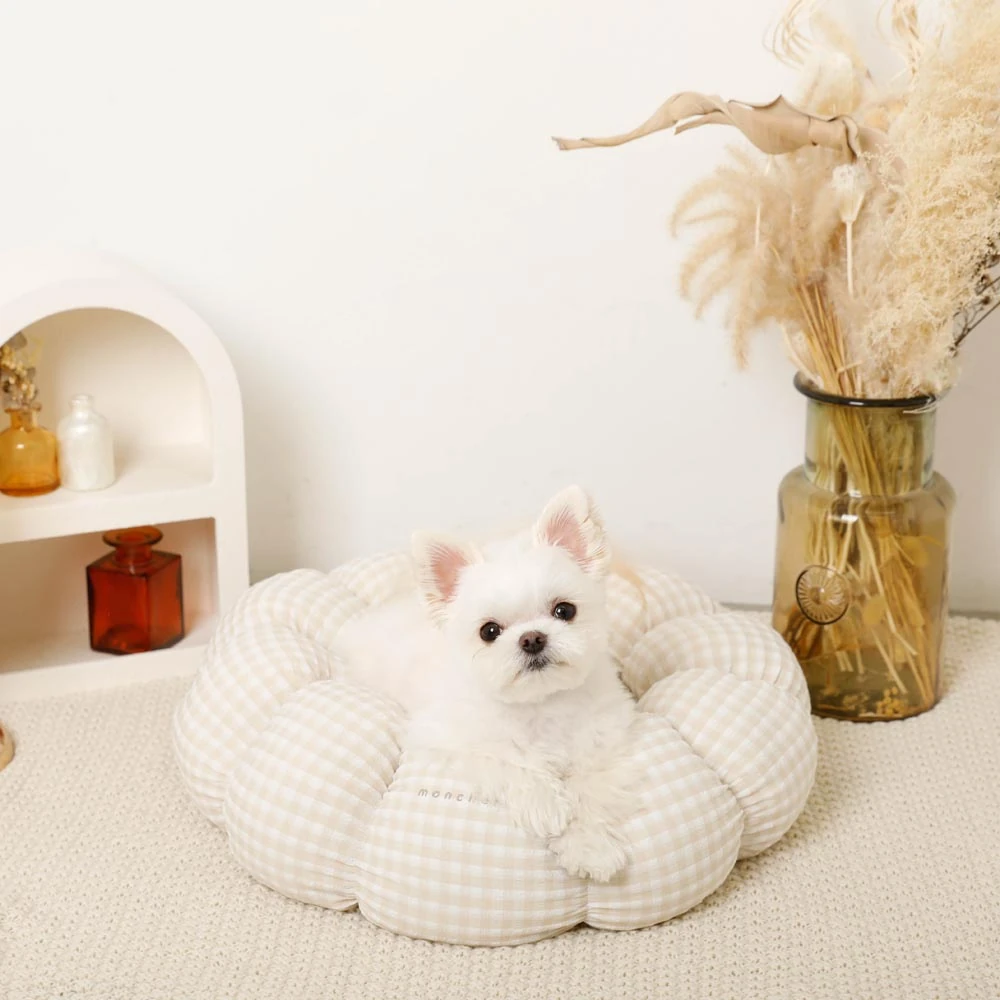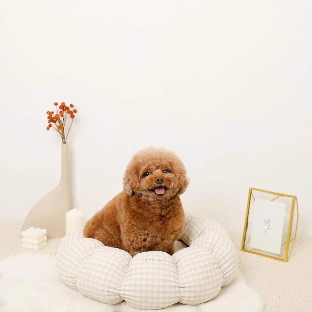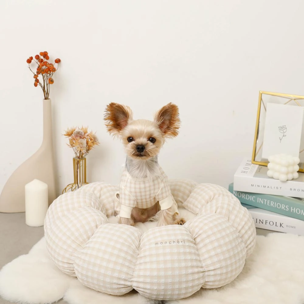 ギンガムチェックドーナツクッションベッド:愛犬・愛猫のための至極の安らぎ