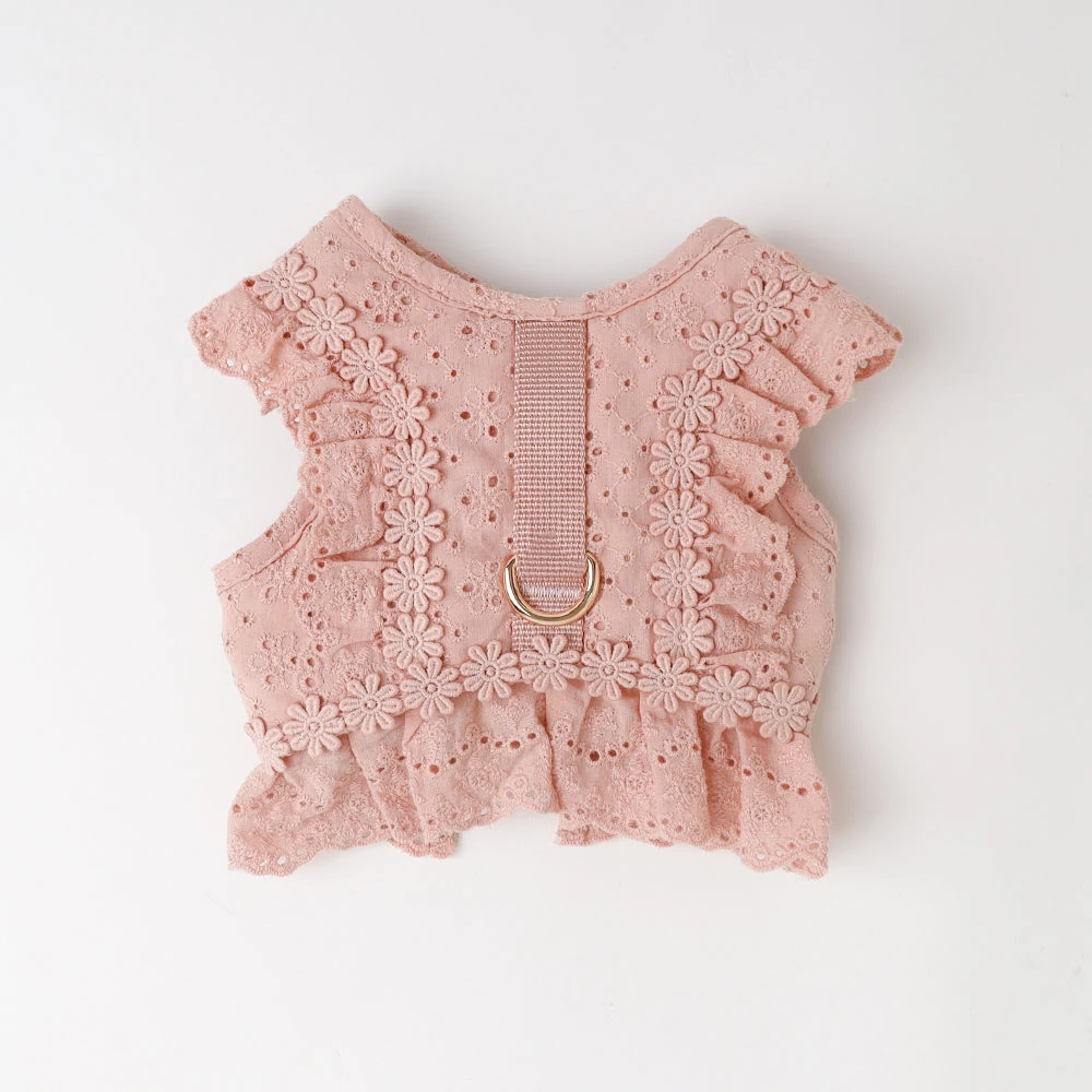 コットンレースフリルハーネス+リードSET【名入れ刺繍対応】
