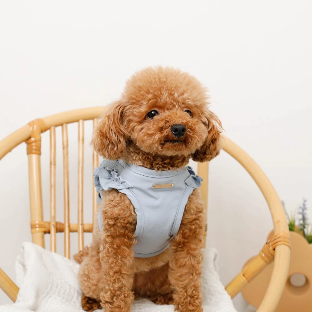 機能性だけでなく、おしゃれなフリルデザインが愛犬の魅力を引き立てます。カラーリングは犬の被毛色に合わせて選べる5色展開。どんなわんちゃんにも似合うデザインです。