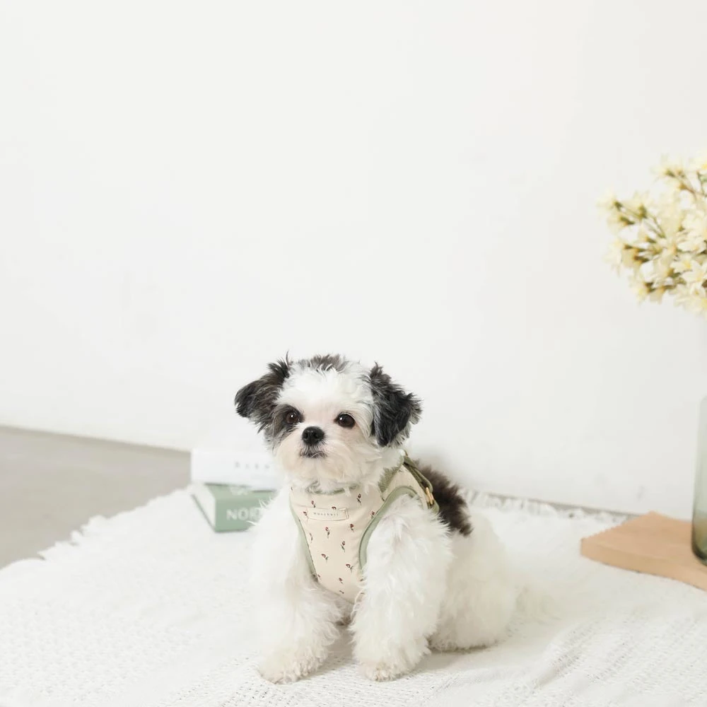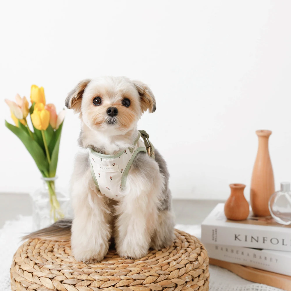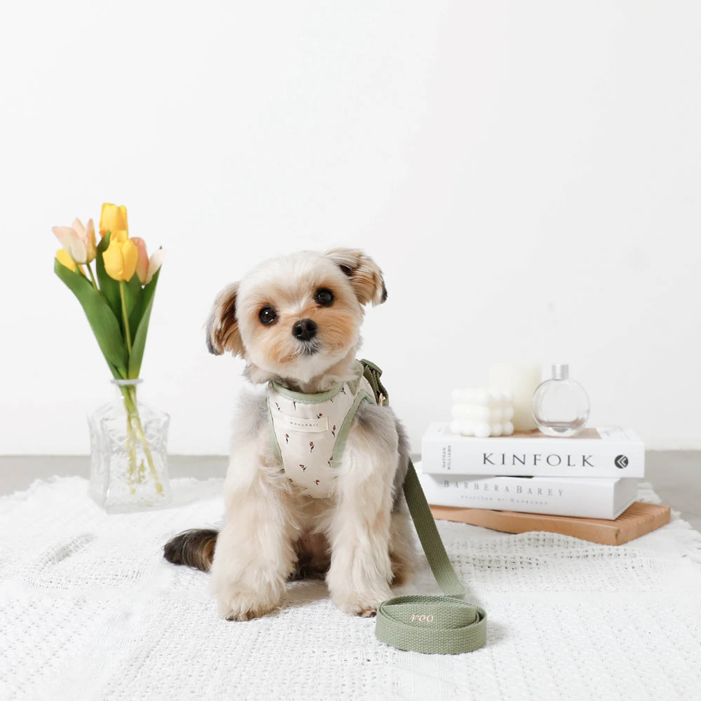 愛犬の春の装いに新しい風を:チューリップ柄ハーネス+リードSET