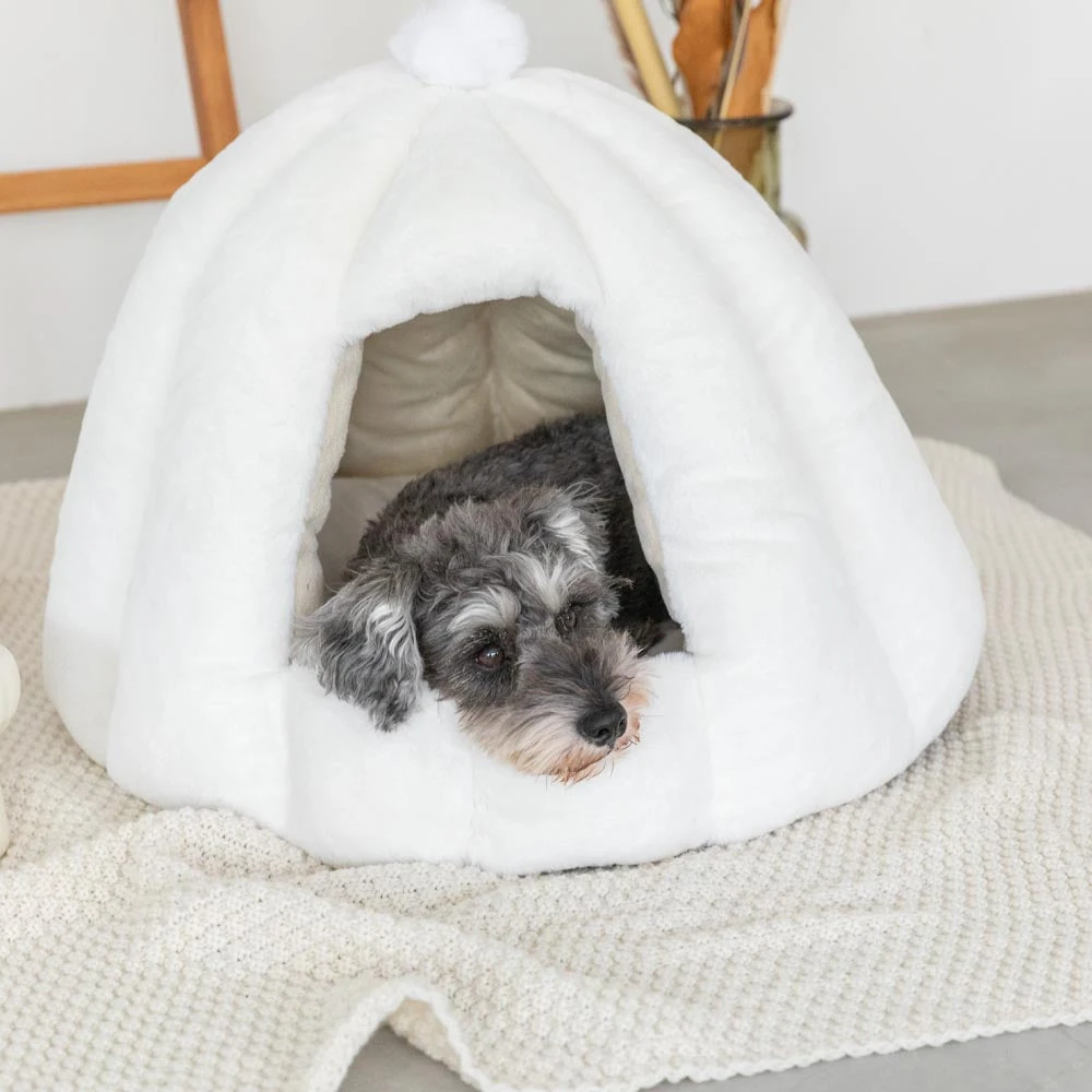 ドーム型セミクローズドペットハウス クッション付:愛犬・愛猫のための至福の休息空間