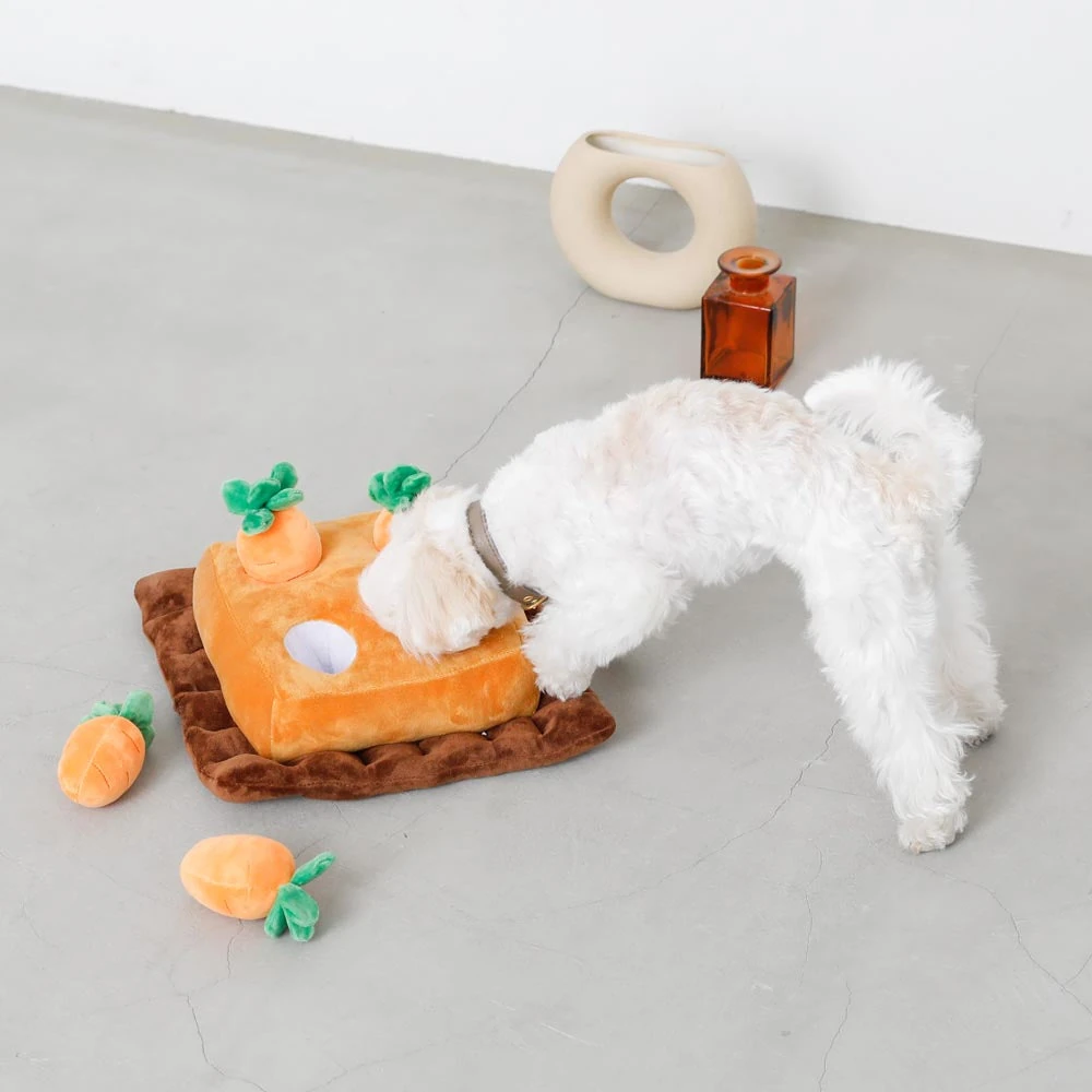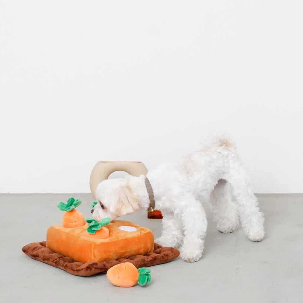 現代の室内犬にとって、十分な精神的刺激と本能的行動の発現は健康維持に不可欠です。ノーズワーク4つのにんじん畑のおもちゃは、犬の最も基本的な本能である「嗅ぐ」行為を最大限に活かした革新的な知育玩具。4つの異なる難易度の隠し場所を巧みに配置し、愛犬の好奇心と探求心を刺激します。忙しい日常生活の中でも、室内で安全にノーズワークトレーニングが実践でき、犬のメンタルヘルスと認知機能の維持をサポートします。