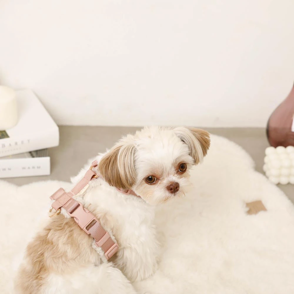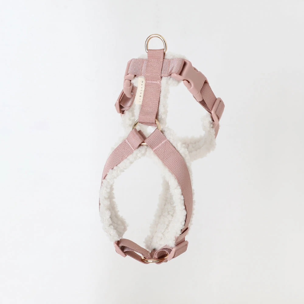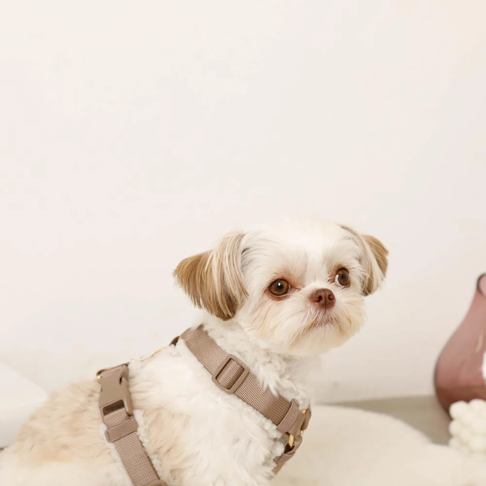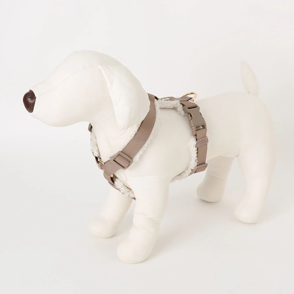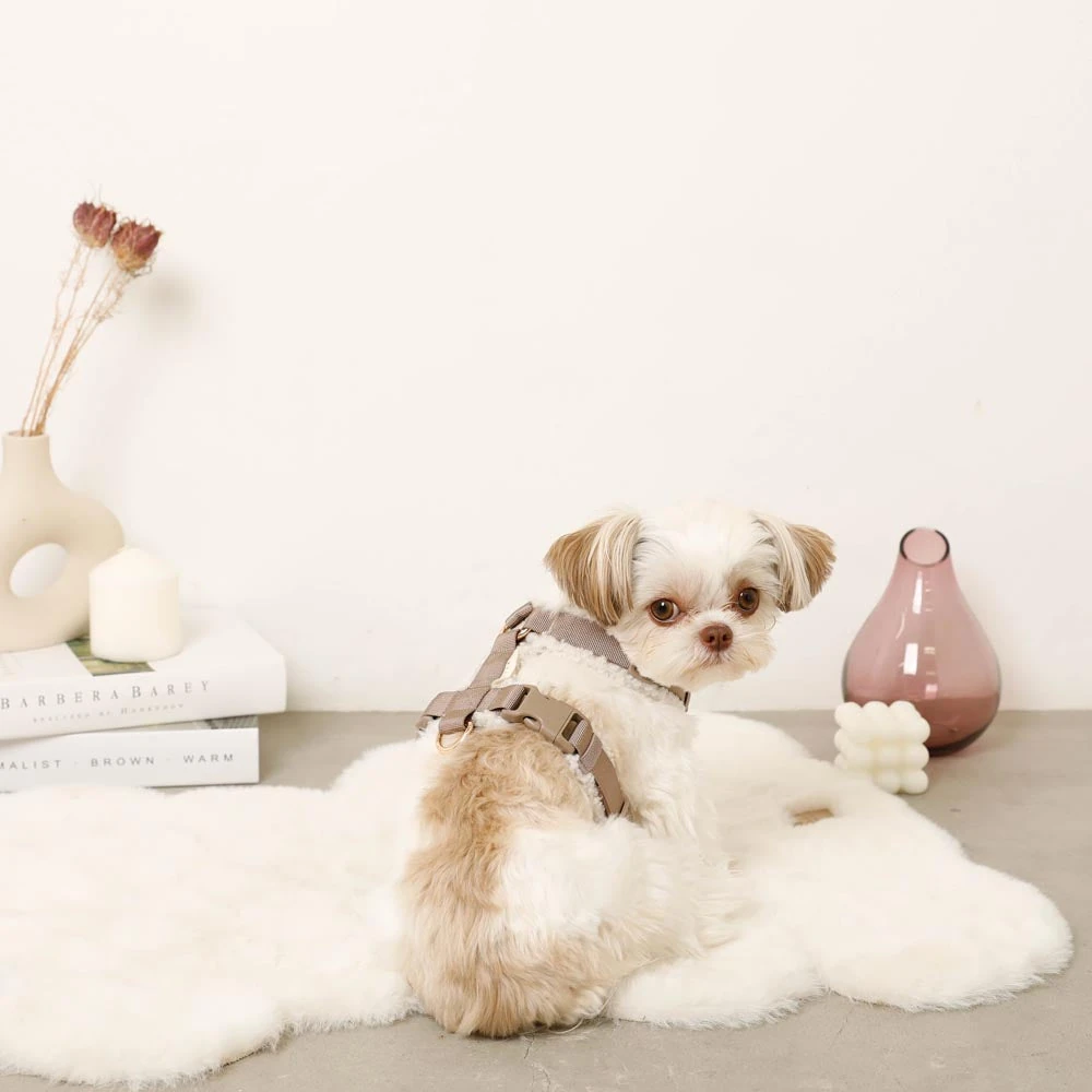 ボア素材の柔らかさと通気性の良さから、季節を問わず快適な装着感を実現しています。調整可能なストラップで、愛犬の体型にぴったりフィットします。