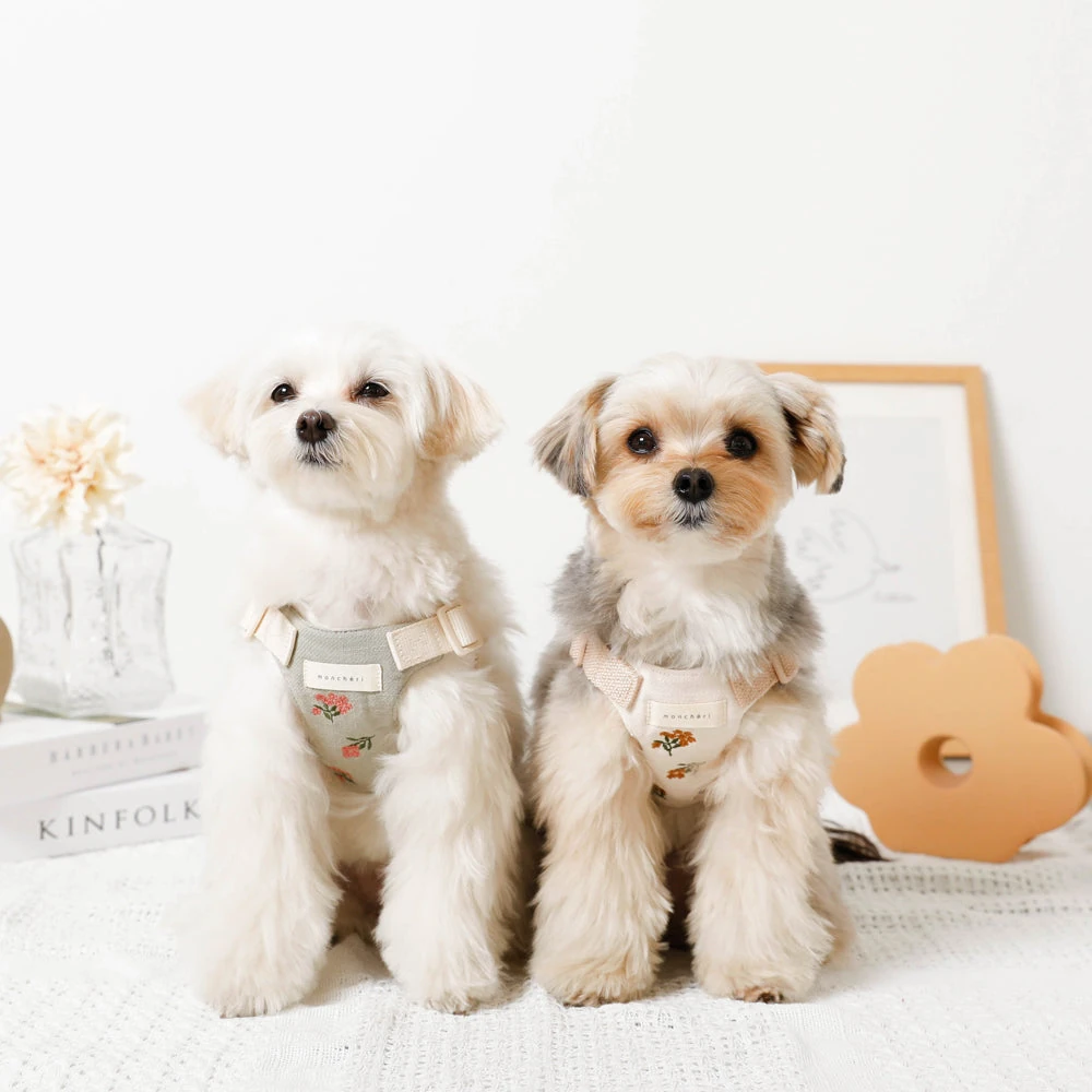 愛犬の快適な夏を約束する 冷感フラワー刺繍ハーネス+リードSET