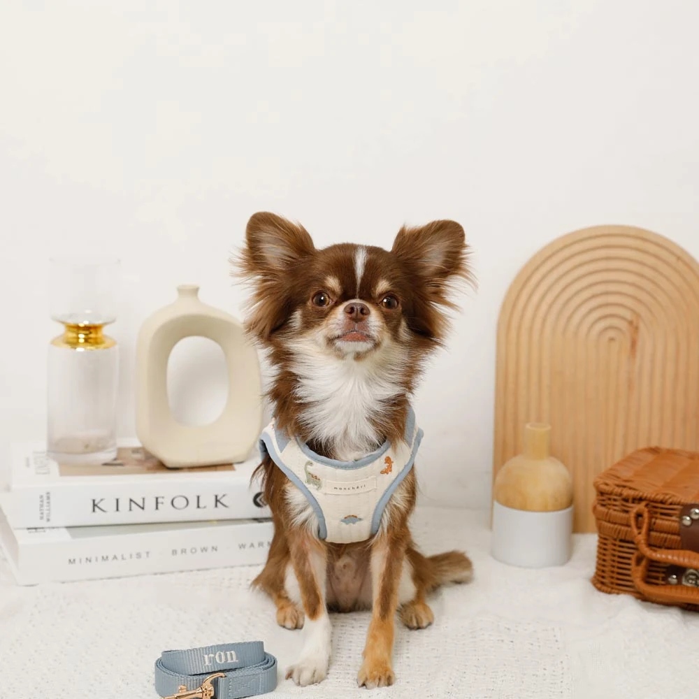 愛犬との毎日をもっと特別に、もっとワクワクさせるために生まれたのが、この「恐竜柄刺繍ハーネス+リードSET」です。ダイナミックで個性的な恐竜柄が、お散歩タイムをまるで太古の探検のように変えてくれます。新製品として登場した本商品は、機能性とデザイン性を両立した、こだわり派の飼い主様にぴったりの一品です。