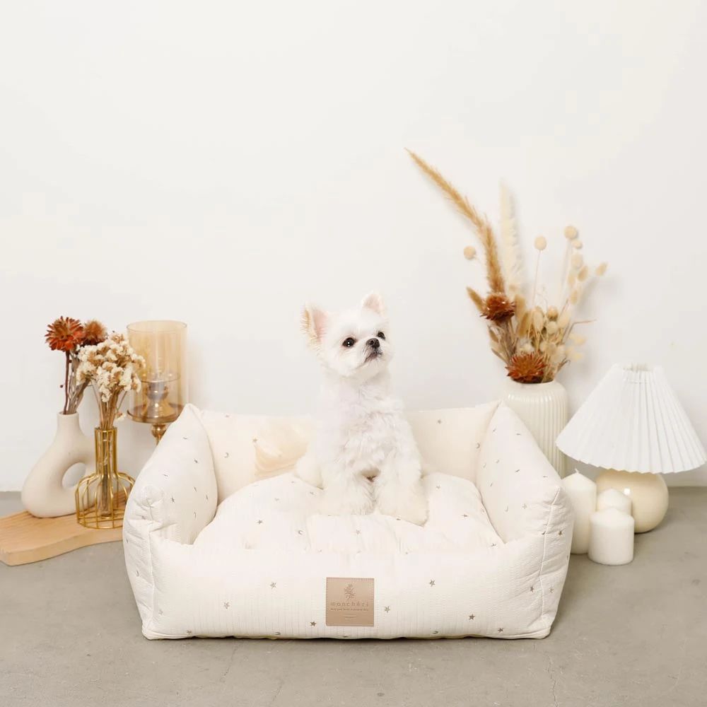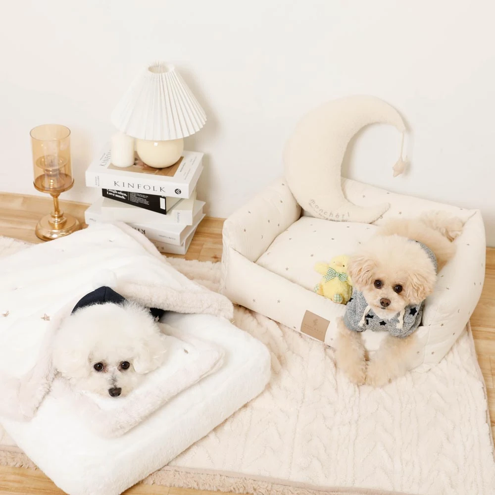 撥水お星さまとお月さま柄刺繍キルティングクッションベッド:愛するペットへの最高の贈り物